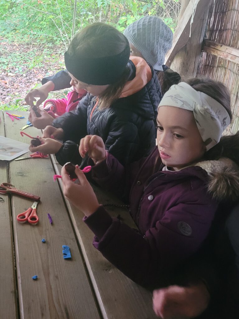 Die ersten Arbeiten für unsere Gartenstelen: Hölzer schleifen und Abstandshalter aus Ton formen