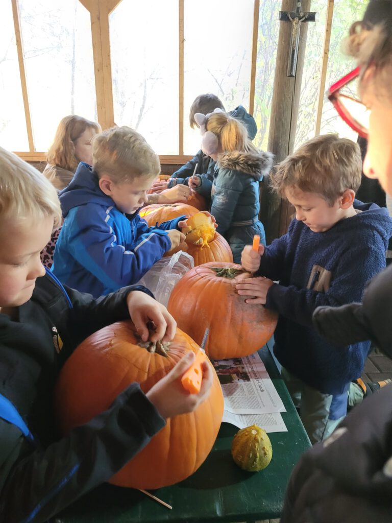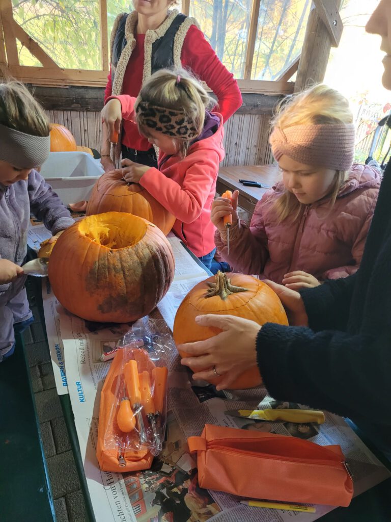 Wir schnitzen Kürbisse mit unseren Radieserlmäusen