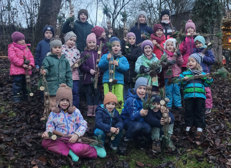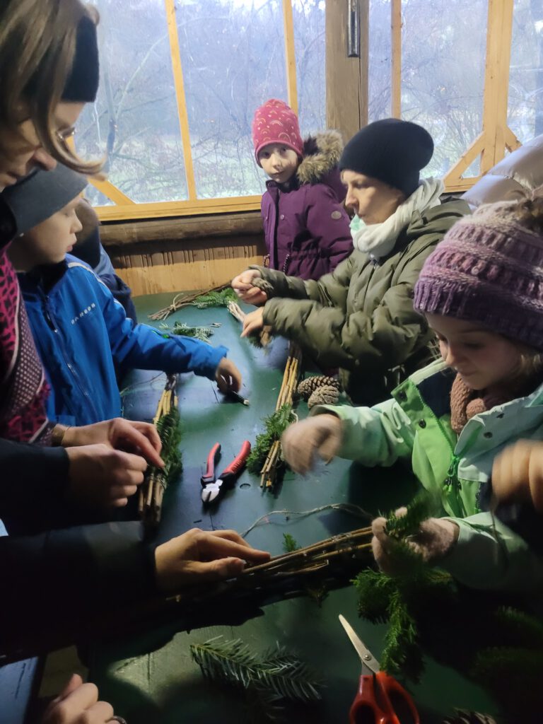 Adventstreffen unserer Radieserlmäuse – Basteln von Meisenknödelhalter aus Ästen